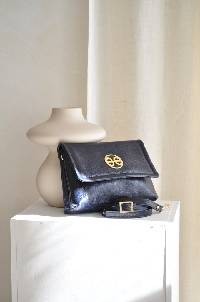Clelia Large Leather Shoulder Bag - Dark Blue