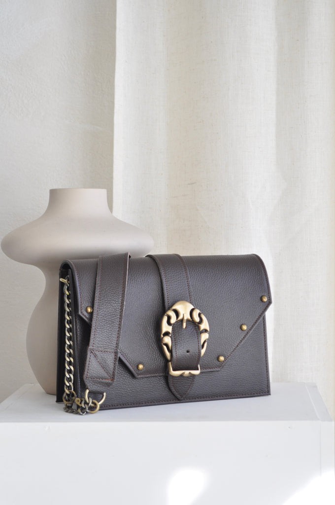 Beautiful and bold. Briana is a day to night shoulder bag. You can adjust the length of the chain and turn it into a cross body. Give it a more rock touch and make the chain double. Wear it in confidence and carry all your necessary items in this ideal bag.