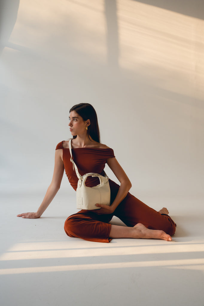 Mitsi Leather Handbag - Cream