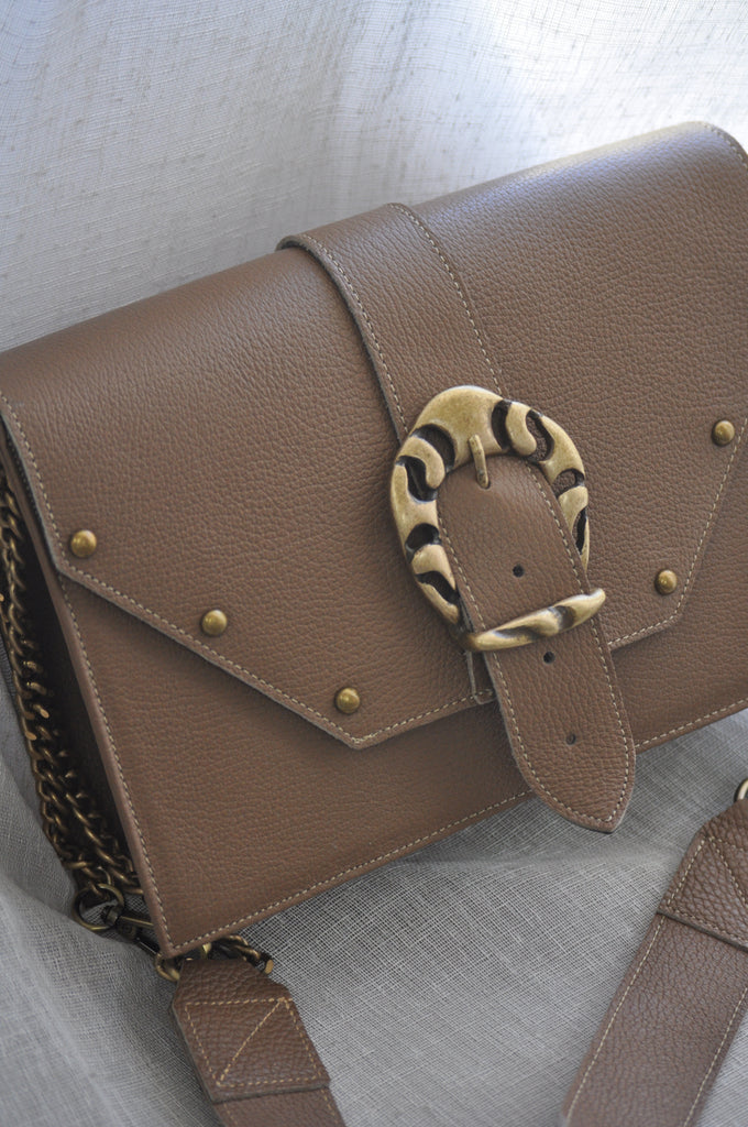 Briana leather shoulder bag is beautiful and bold. Briana is a day to night shoulder bag. You can adjust the length of the chain and turn it into a cross body. Give it a more rock touch and make the chain double. Wear it in confidence and carry all your necessary items in this ideal bag.