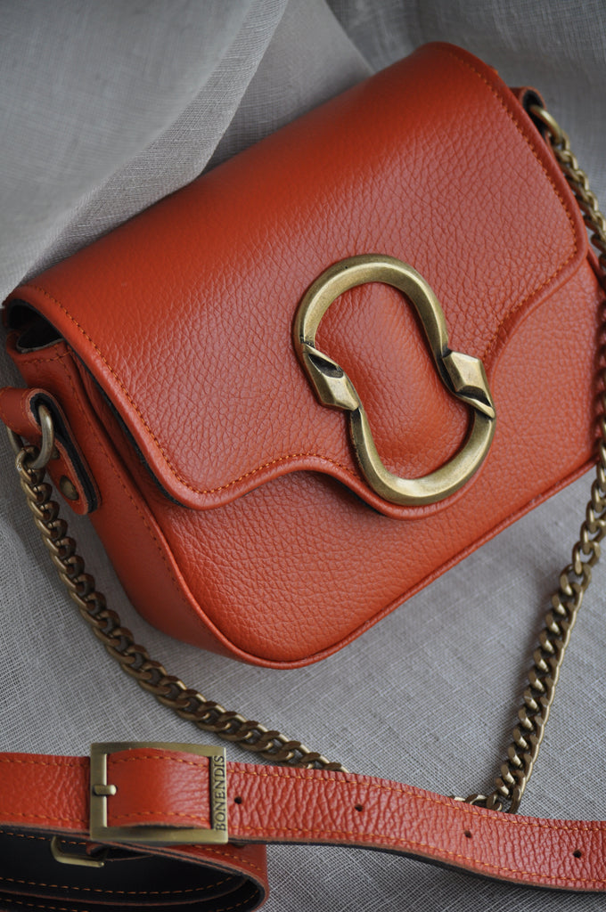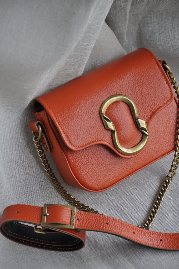 The Beautiful Mini Bag Eden is the perfect leather accessory to wear from day to night.  The leather strap gives a more casual tone to your look   and the golden decorative makes you’re appearance stand out . It has a beautiful rounded shape and with the chain you can turn it into an elegant cocktail purse.