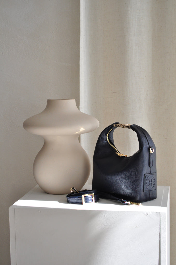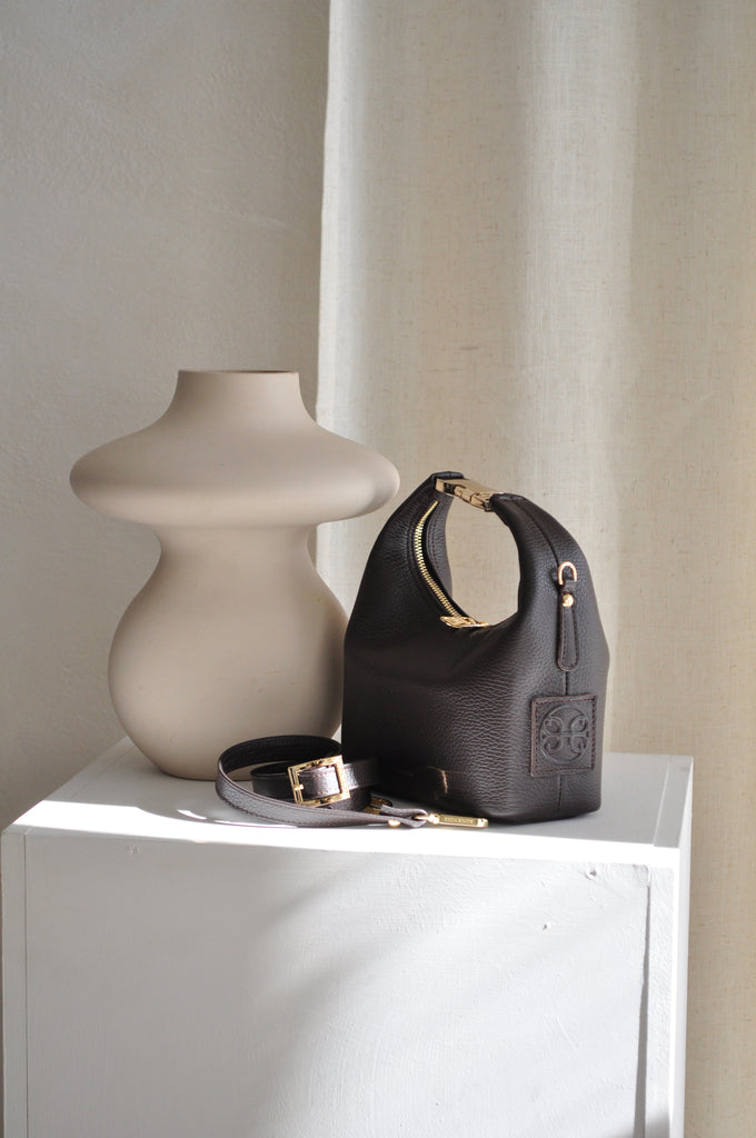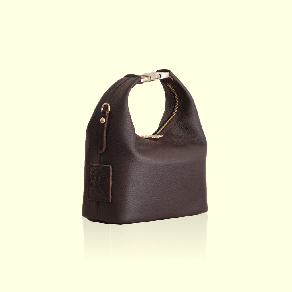 Is a true leather jewel. Petite, elegant, is decorated with beautiful details and a gold buckle that crowns this lovely leather soft handbag. It combined with a leather strap so it can be worn as cross body bag. A sleek and structured accessory designed to elevate your style with elegance and sophistication in any occasion .