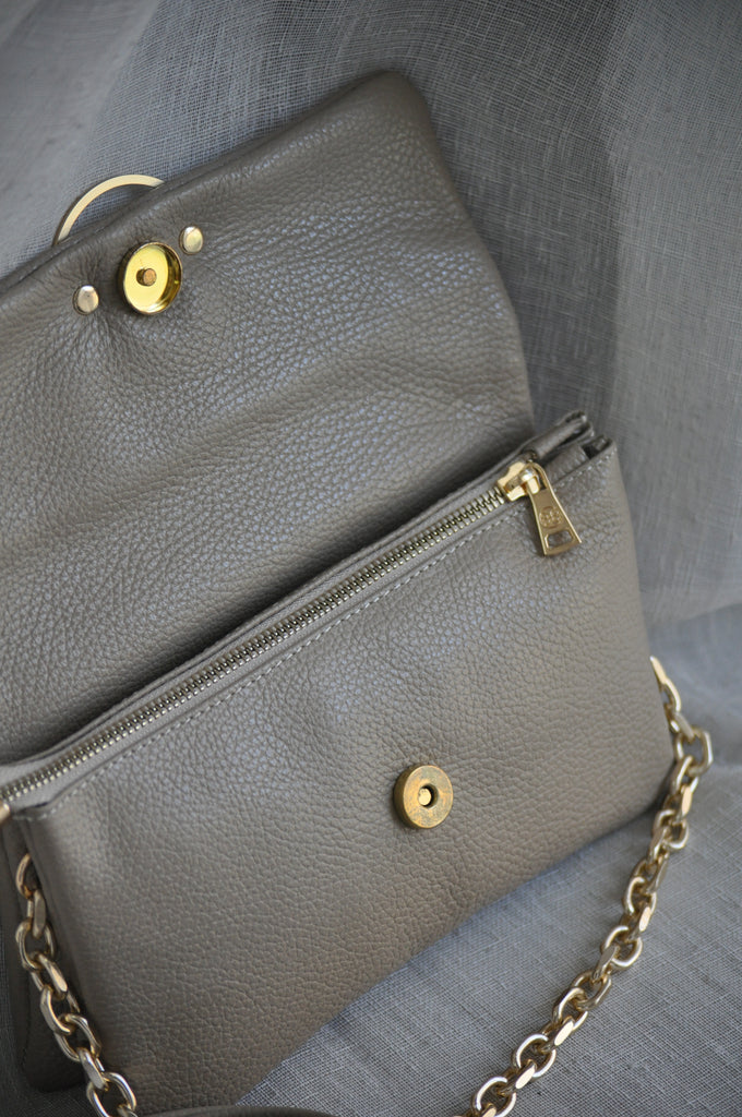 Clelia Mini Leather Shoulder Bag - Taupe