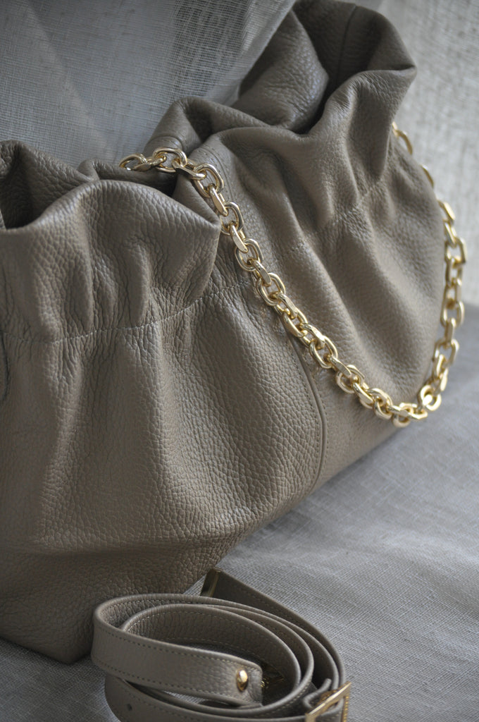 The Nefeli Leather Boho Pouch is the perfect blend of elegance and free-spirited charm. Crafted from premium leather, this shoulder bag features a sleek chain strap and a leather strap for a touch of effortless sophistication. Compact yet stylish, it's your go-to accessory for both casual and chic outings.