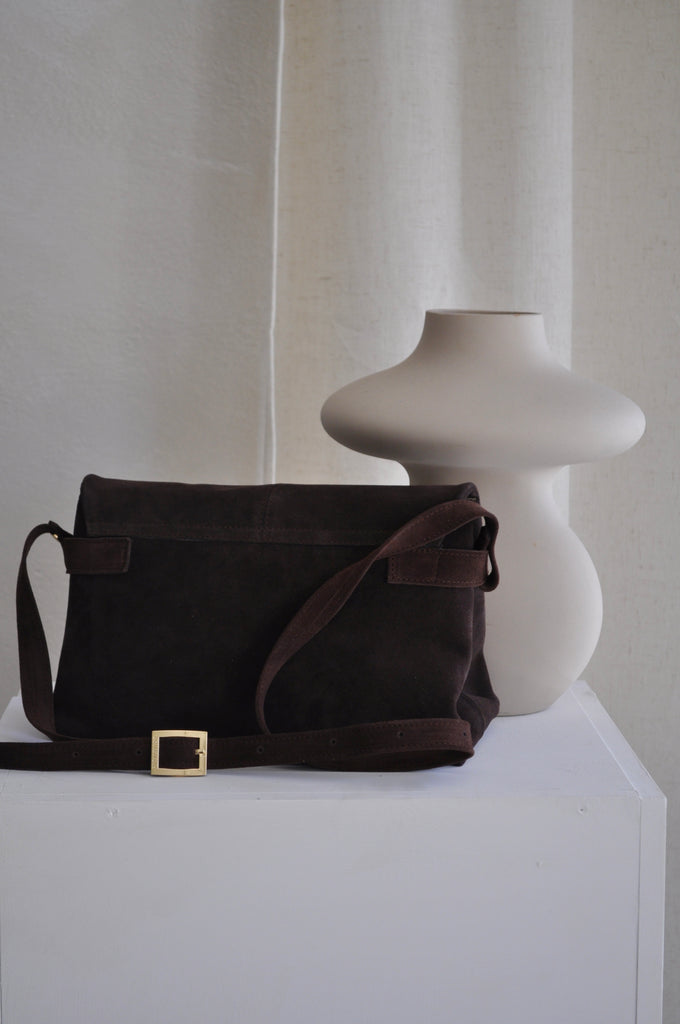 Amalia Leather Crossbody Bag - Chocolate Suede