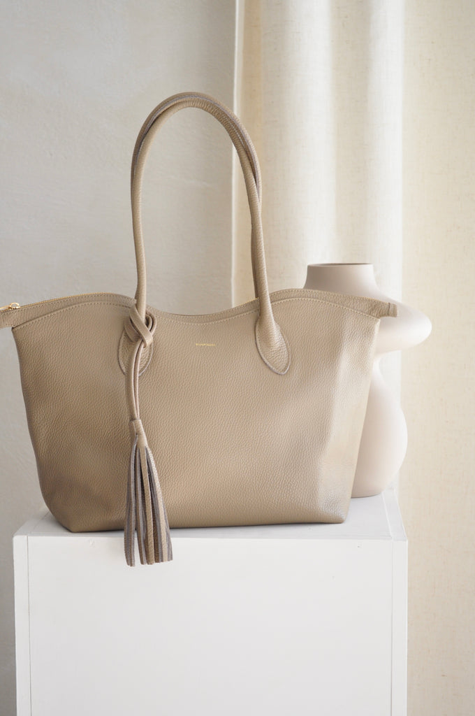 Bisou Large Leather Shopper - Taupe