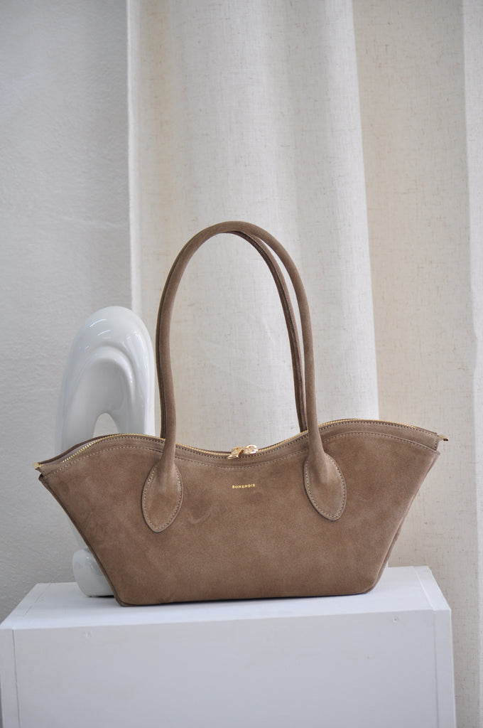 Bisou Small Leather Shoulder Bag- Mocca Suede