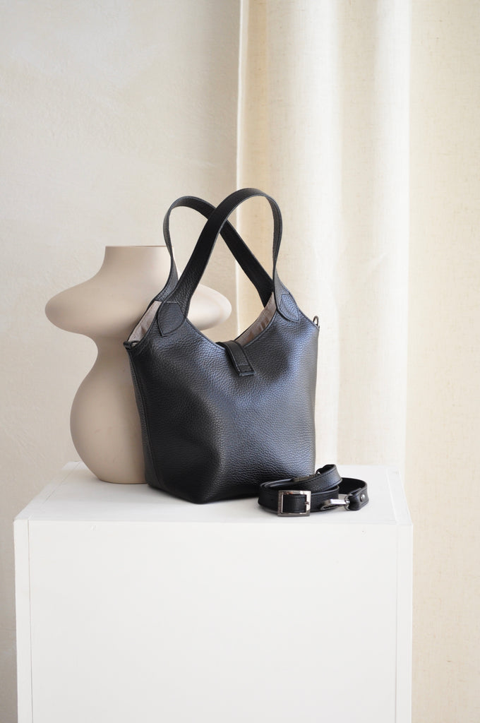 The Bucket is the ultimate chic handbag, effortlessly versatile for any occasion. Its timeless silhouette perfectly blends femininity with modern design, making it the ideal choice for both relaxed daytime outfits and sophisticated night-time ensembles.