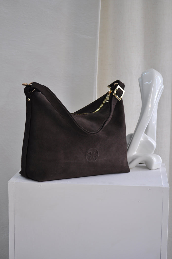 Rallu Leather Shoulder Bag - Chocolate Suede