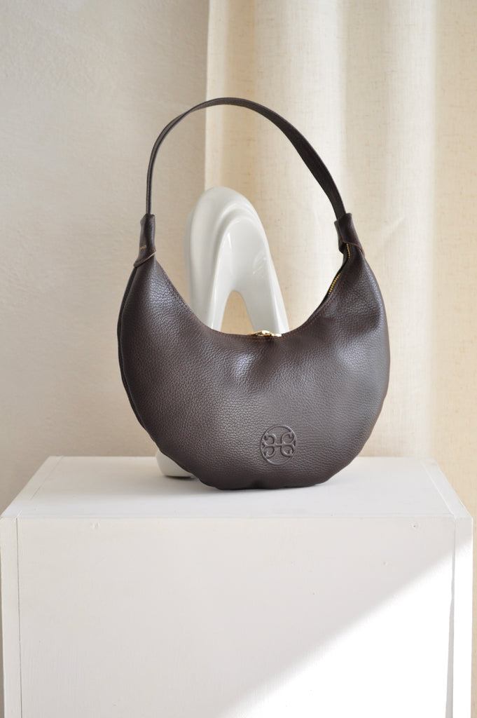 Ophelia Small Leather Shoulder Bag - Dark Brown