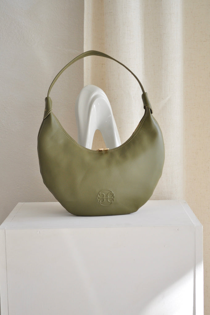 Ophelia Small Leather Shoulder Bag - Olive Green