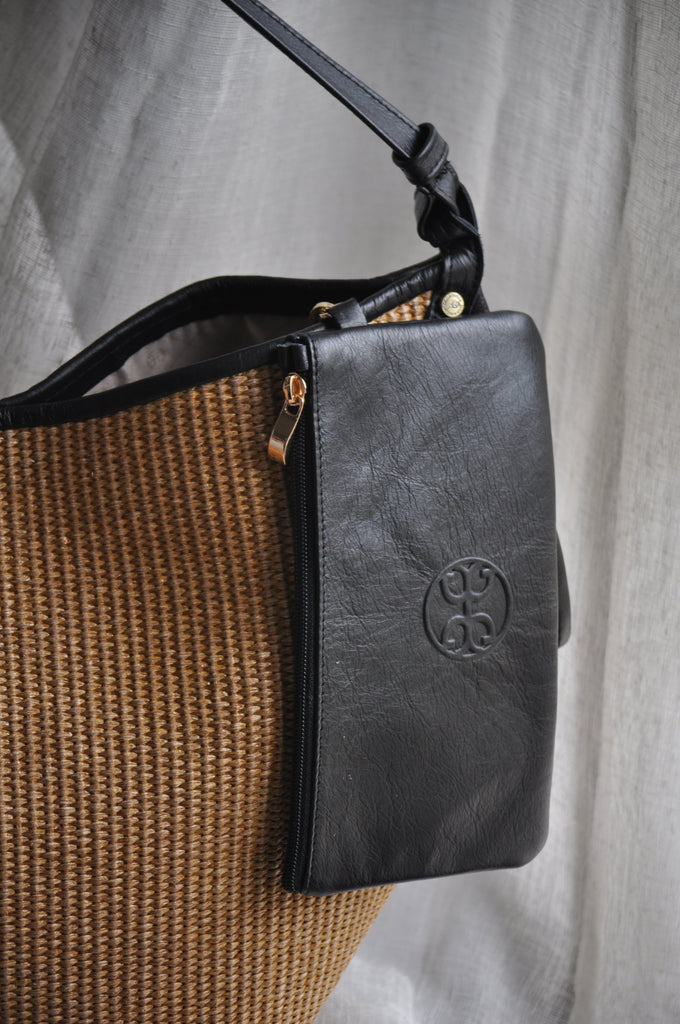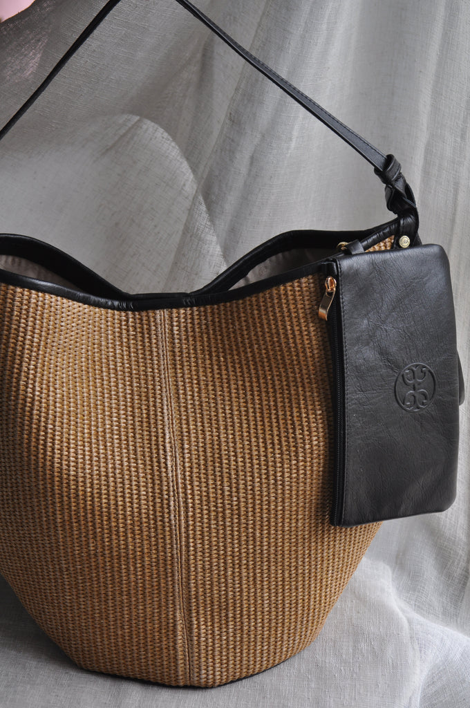 Helena Raffia Shoulder Bag - Black