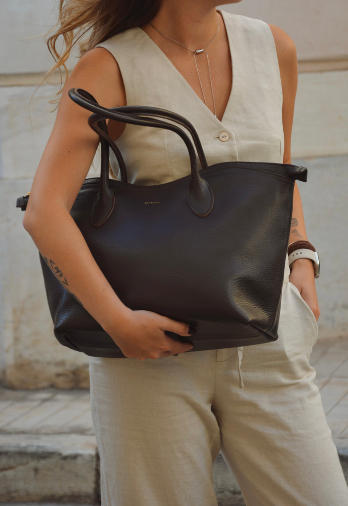 Bonendis Leather Shoulder Bag is a statement piece made to stand out. This beautiful leather shoulder bag has an impressive buckle and the metal chain can turn it into a handbag.