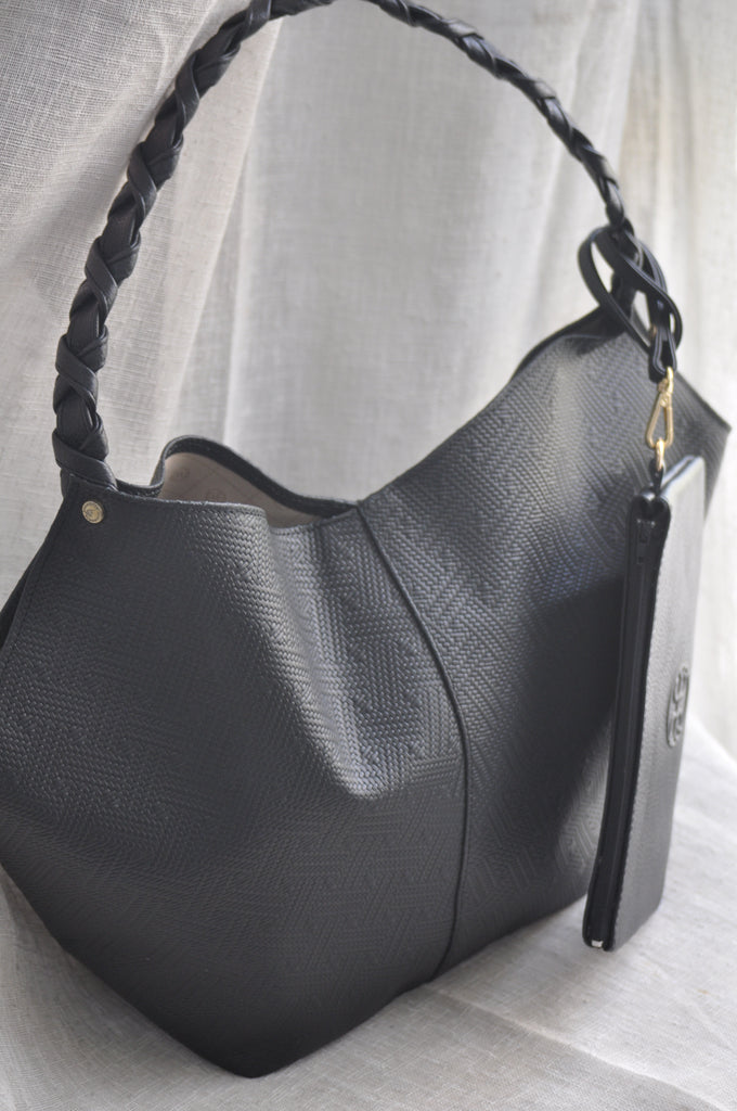 Helena Small Leather Shoulder Bag - Black Textured