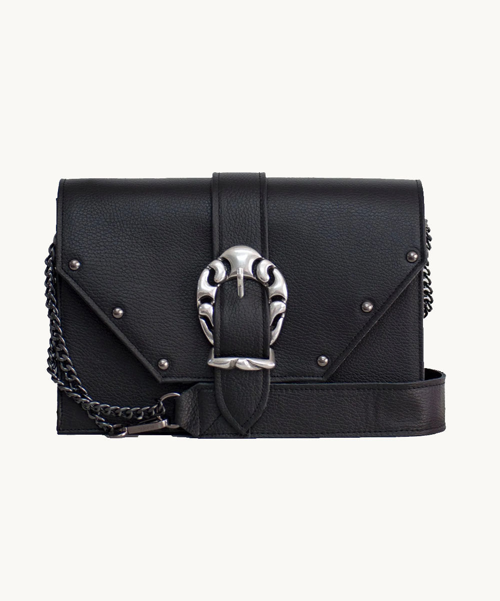 Beautiful and bold. Briana is a day to night shoulder bag. You can adjust the length of the chain and turn it into a cross body. Give it a more rock touch and make the chain double. Wear it in confidence and carry all your necessary items in this ideal bag.
