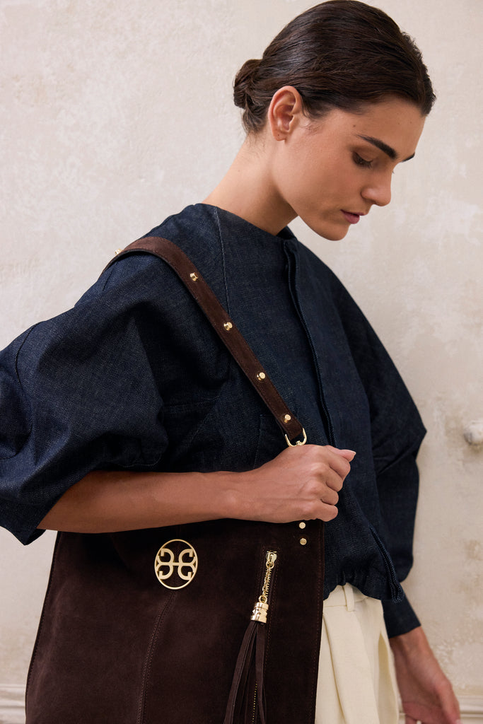 Chevie Leather Shoulder Bag - Chocolate Suede