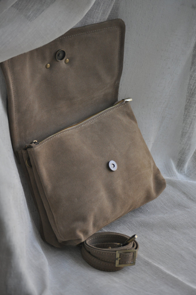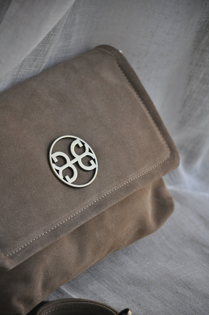 Clelia Large Suede Leather Shoulder Bag - Mocca